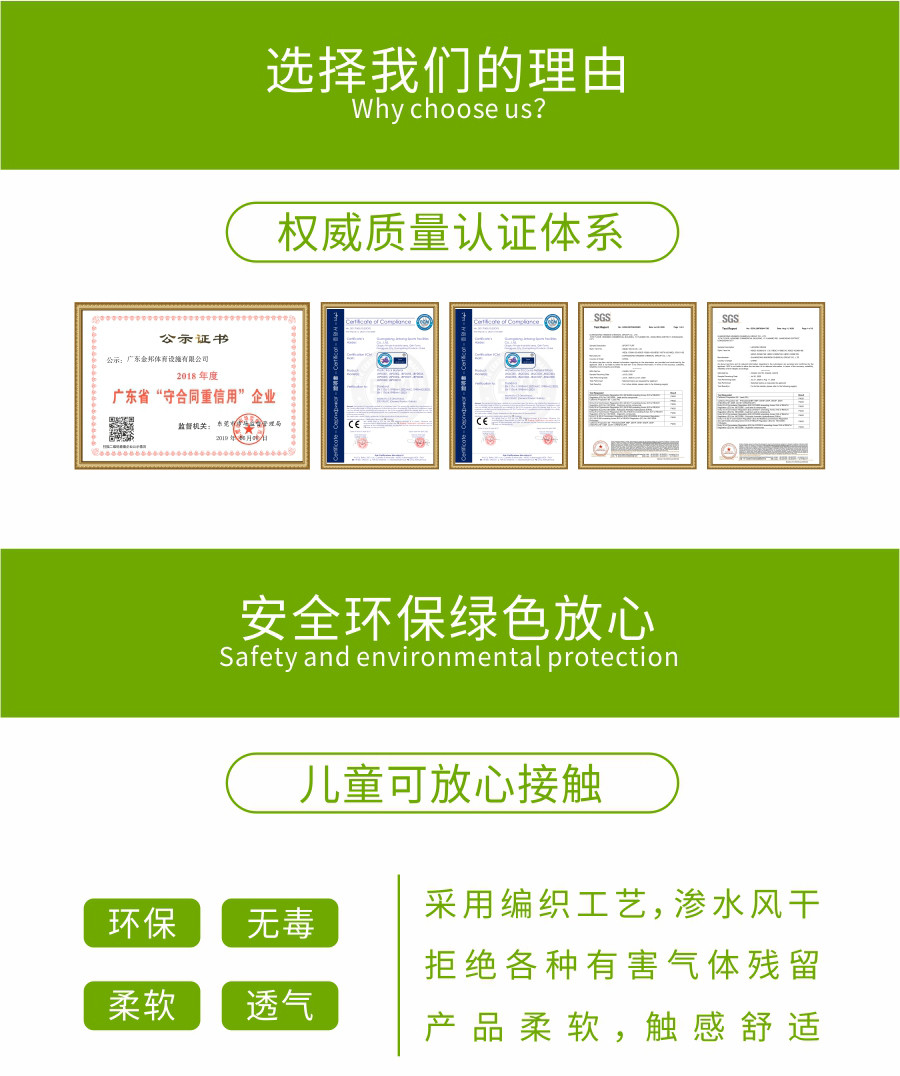 人造运动草坪有外观鲜艳,排水性能好,使用寿命长,维护成本低等特点。能有效减少对运动者皮肤的擦伤和灼伤,加筋结构不仅增加了草苗的挺拔度,进一步提高了草坪的仿真效果,草苗高度一般为50MM。普遍适用于: 足球场,训练场等场地。